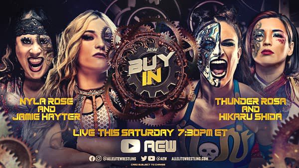 The Buy In PreShow features Tag team match where Nyla Rose and Jamie Hayter takes on Hikaru Shida and Thunder Rosa. Shawn Spears and Wardlow tried to help MJF in this match but The Icon Sting took them out with his baseball bat and a steel chair. The event marks the first time that a non-WWE pay-per-view wrestling event has been held in the city in over twenty-five.